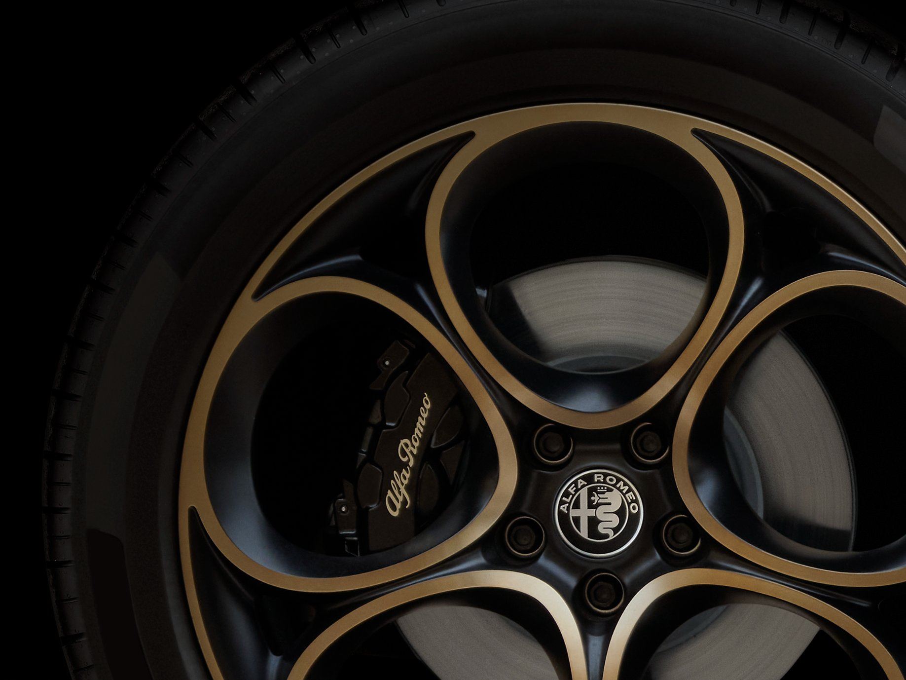 Kaliper rem juga akan menjadi hitam, dengan nama Alfa Romeo dengan emas bening. Untuk membuat keturunan dengan warisan Alfa Romeo, tersedia tiga warna: Alfa Red, Montreal dan Black Alfa.